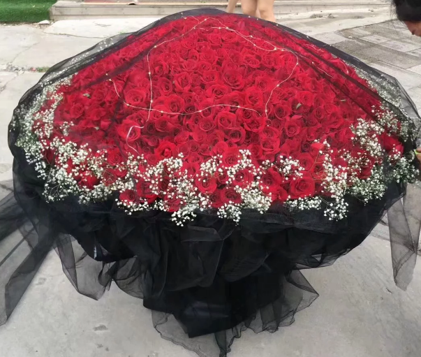 材质: 精选1314朵红玫瑰, 满天星围边搭配