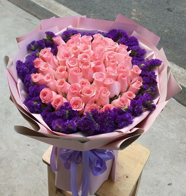 材质: 52枝戴安娜玫瑰,勿忘我搭配