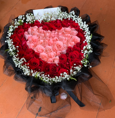 材质: 精选39朵粉玫瑰,60朵红玫瑰,共99枝,满天星黄英围边