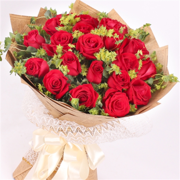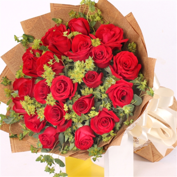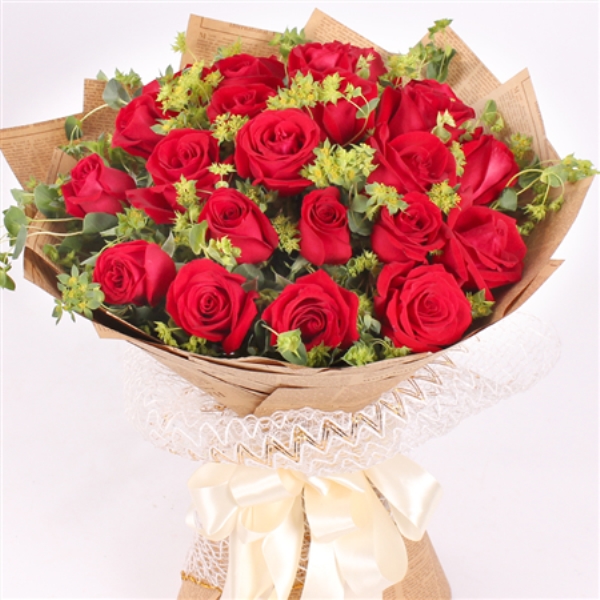 | 材质: | 19枝红玫瑰,叶上黄金间插 | ||||