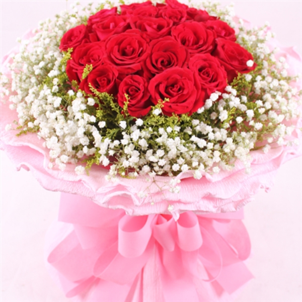 | 材质: | 19枝昆明顶级红玫瑰,满天星间插 | ||||