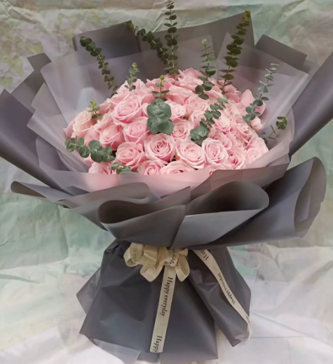 材质: 精选52枝戴安娜粉玫瑰,尤加利间插
