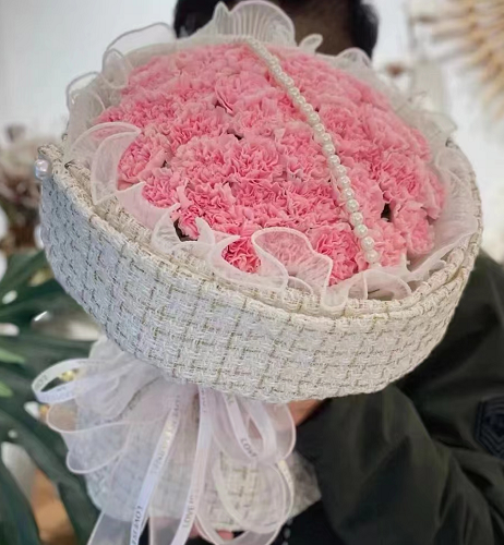 材质: 52枝粉色康乃馨,珍珠搭配