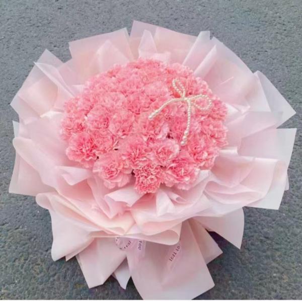 材质: 精选33朵粉色康乃馨,珍珠蝴蝶结
