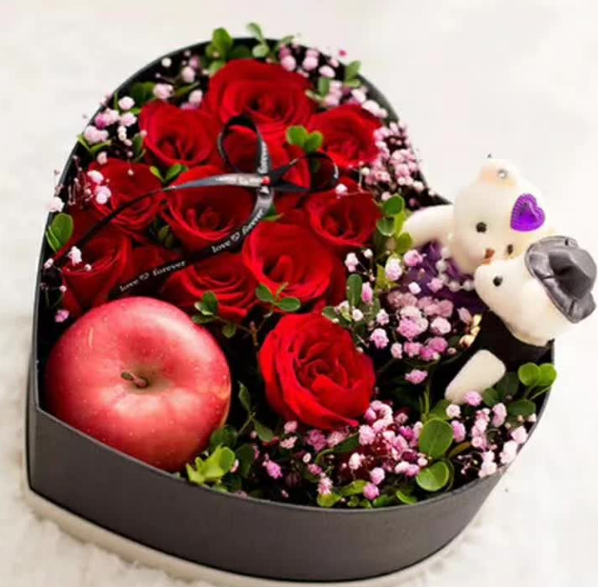 材质: 精选11朵红玫瑰,1颗苹果,2只小熊,