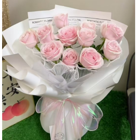 | 材质: | 11枝粉雪山玫瑰,如图包扎 | ||||