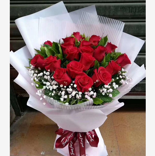 材质: 19朵红玫瑰,搭配栀子叶满天星