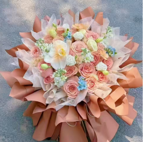 其它说明: 由于鲜花包扎各地的花艺师不同,可能在花束的形式和搭配上与图片不完全一致