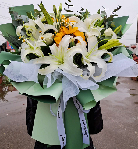 材质: 19朵百合,2支向日葵,洋桔梗,尤加利叶搭配