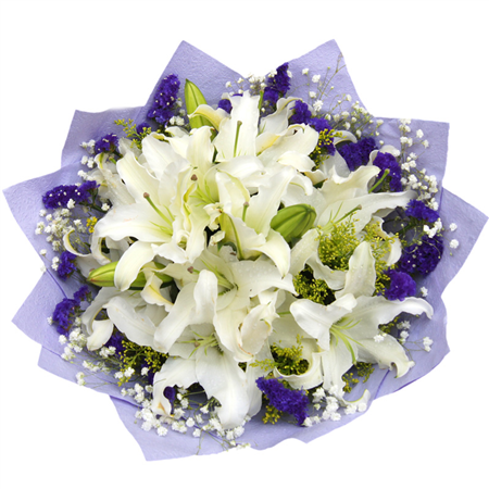 | 包装: | 浅紫色皱纹纸圆形包装,搭配浅紫色蝴蝶结 | ||||