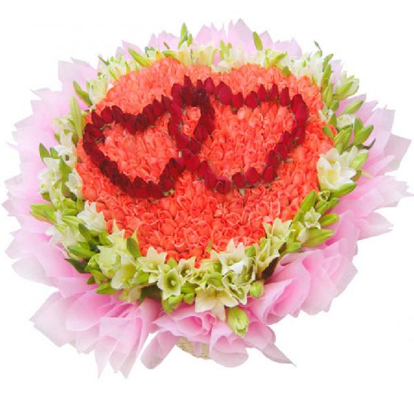 | 材质: | 365枝粉玫瑰(中间红玫瑰包含在内),40枝白百合绿叶 | ||||