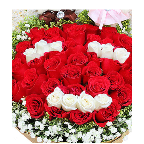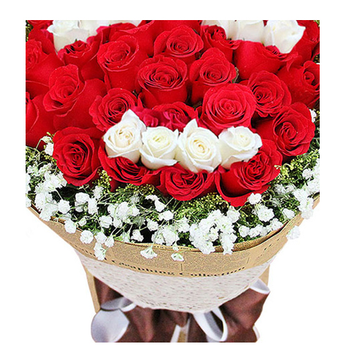 材质: 42朵红玫瑰 10朵昆明白玫瑰,52朵玫瑰如图制作