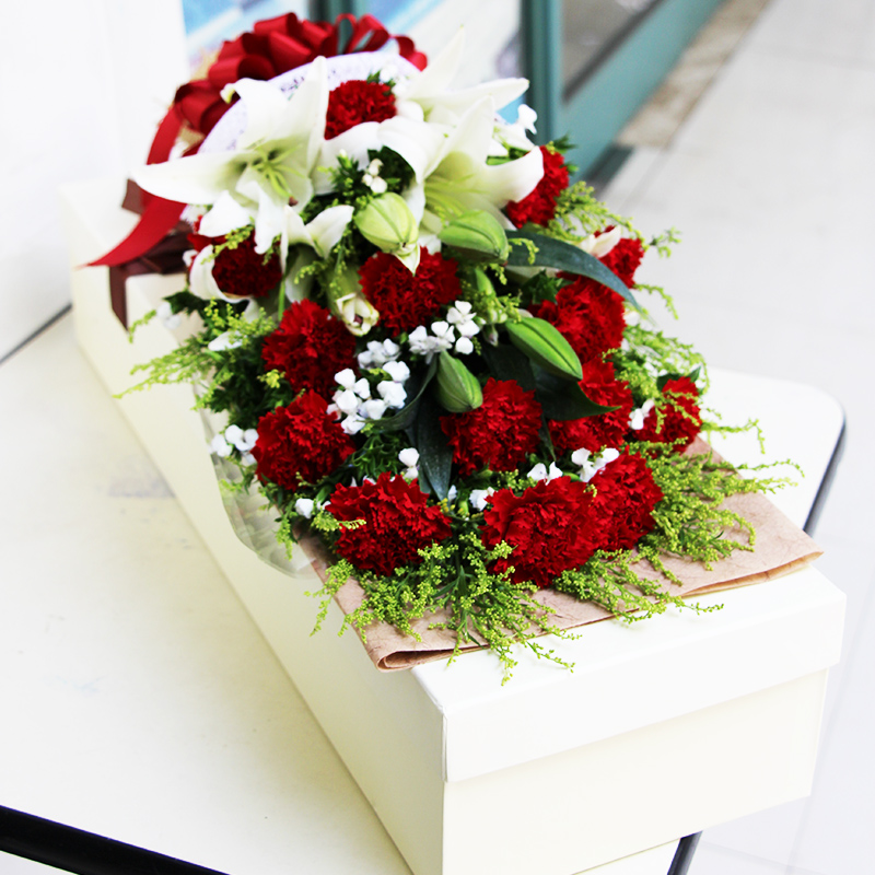 其它说明: 由于鲜花包扎各地的花艺师不同,可能在花束的形式和搭配上与图片不完全一致