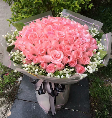 材质: 99朵戴安娜粉玫瑰,满天星搭配