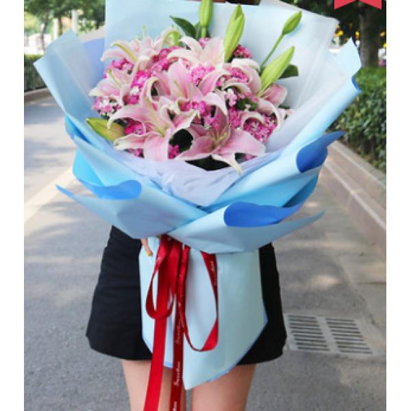 材质: 19朵粉百合,相思梅搭配