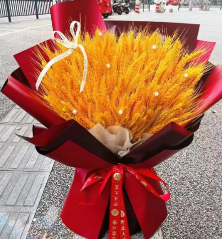 大麦花束,珍珠搭配,蝴蝶结丝带