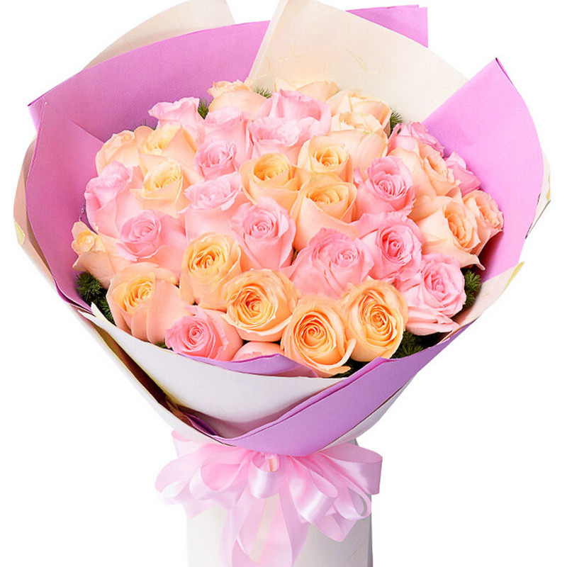 戴安娜玫瑰17枝 香槟玫瑰16枝 33枝玫瑰混色搭配 绿叶装饰 美丽动人