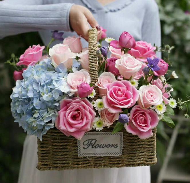 蓝色绣球,戴安娜,紫玫瑰 桔梗,小雏菊,尤加利叶,相思梅 勿忘我
