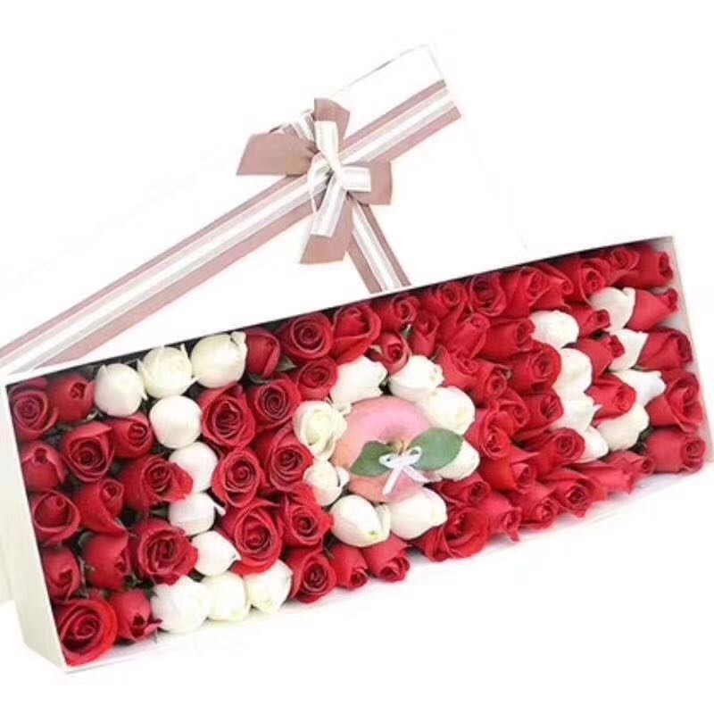 73朵红玫瑰,26朵白玫瑰,共99朵玫瑰如图样式 1个苹果高端礼盒装