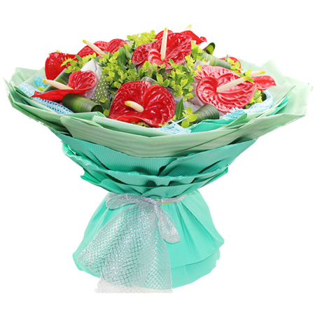 蓝色纱网内衬,浅绿色包装纸圆形精美包装。