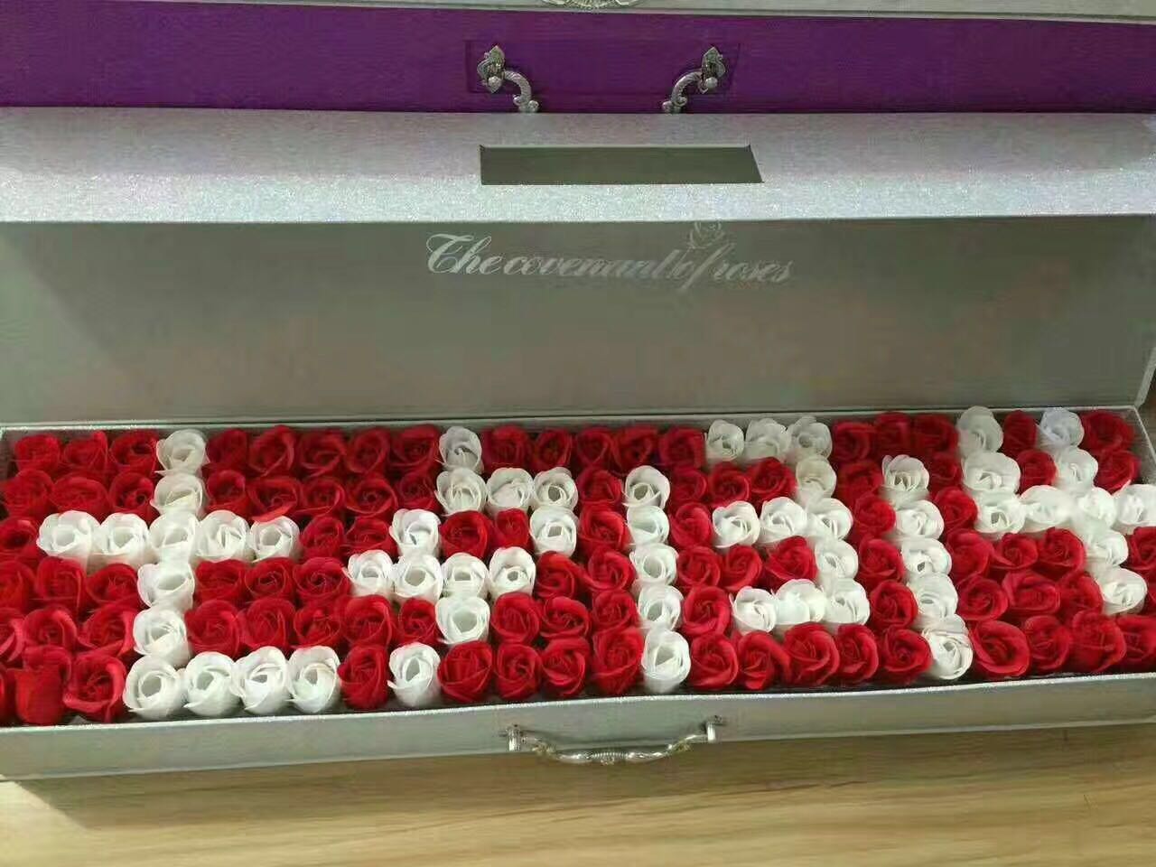 白玫瑰中间设计为七夕1314图案