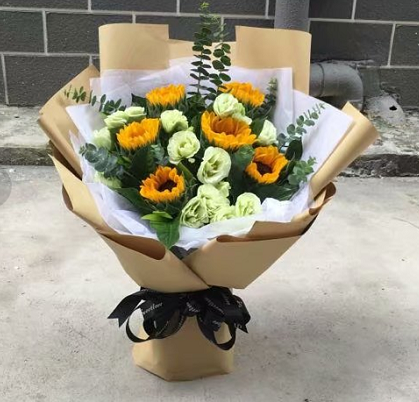 精选6朵向日葵,桔梗 尤加利叶搭配